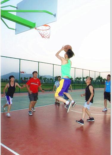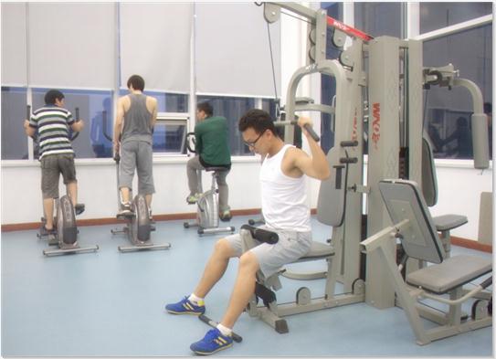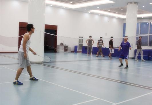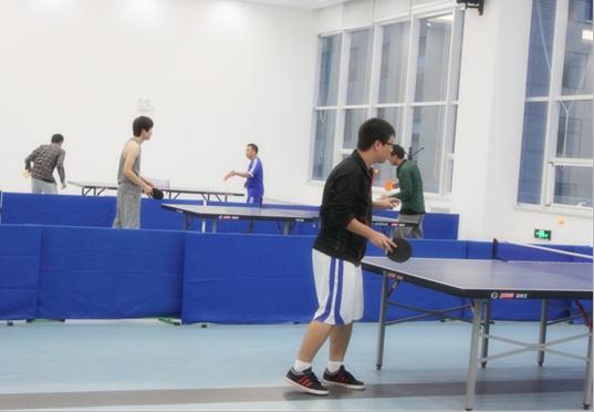 在公司綜合樓活動中心業余時間員工正在進行體育活動