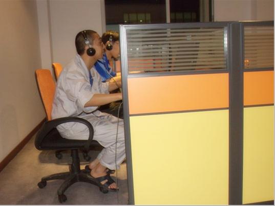在公司綜合樓活動中心業余時間員工正在電子閱覽室查閱資料